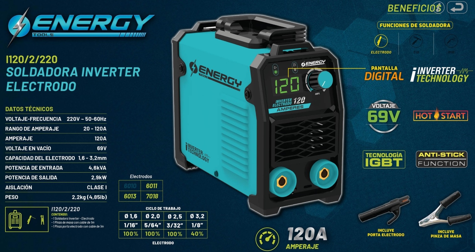 SOLDADORA INVERTER ELECTRODO 120 amp "ENERGY"